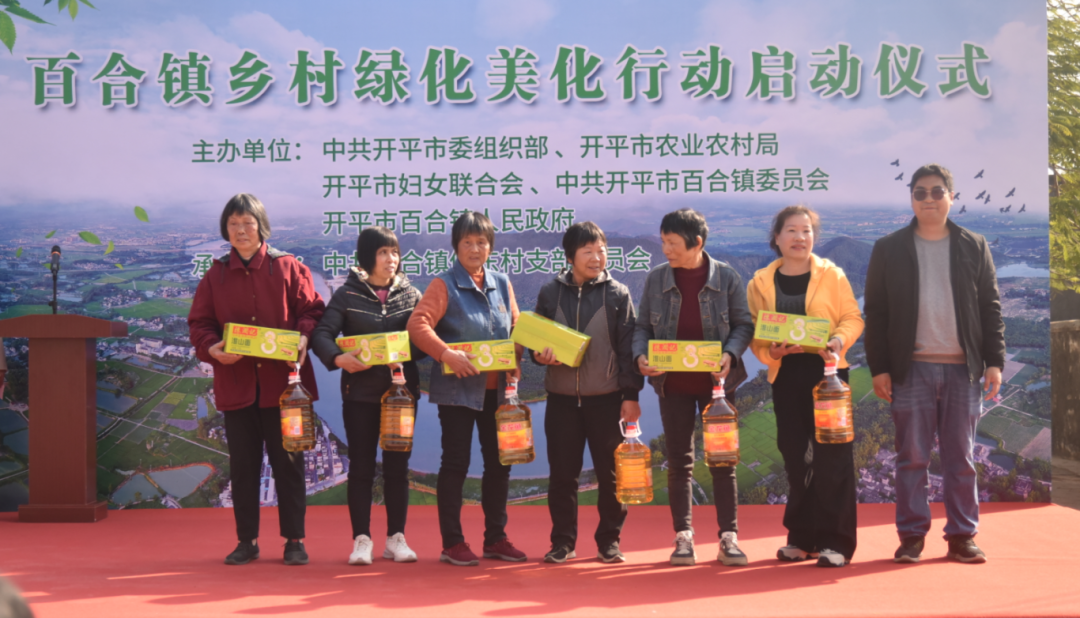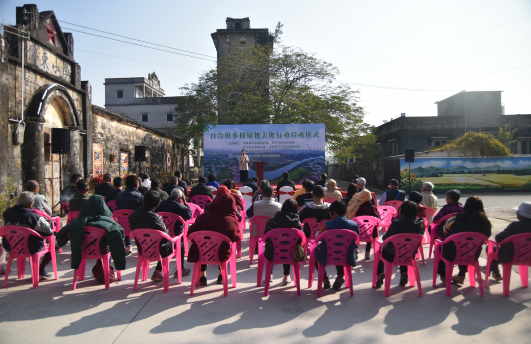 百合鎮黨委書記梁志偉向活動致辭。他表示,百合鎮要以培育省“百縣千鎮萬村高質量發展工程”典型鎮為重點,全面實施黨建引領“美麗庭院”建設和鄉村綠化美化行動,大力提升鄉村顏值和內涵;同時,助力開平市整縣推進農文旅融合發展試點的重要任務,依托潭江碧道、優美田園、碉樓村落等資源稟賦,量身定制“一村一民宿”招商規劃,將百合景點穿珠成鏈,推動農文旅融合高質量發展;此外,重視發動熱心鄉賢、僑胞、企業等社會力量,投身美麗鄉村建設,以家庭“小美”匯聚成鄉村“大美”。