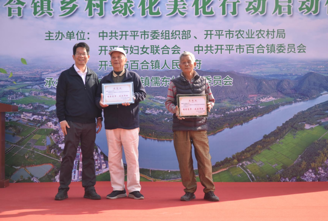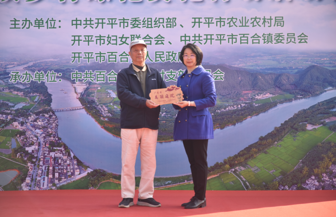 開平市婦女聯合會黨組書記、主席勞念華為獲評省級“美麗庭院”戶榮譽稱號的家庭代表頒發榮譽牌匾,開平市委組織部副部長鄺鈞毅為獲評開平市“美麗庭院”戶榮譽稱號的家庭代表頒發榮譽牌匾。2024年,百合鎮打造出省級“美麗庭院”1戶,開平市“美麗庭院”3戶。其中,胡志良家庭認定為省級“美麗庭院”戶,胡兆策家庭、胡健述家庭、胡耀幟家庭認定為開平市“美麗庭院”戶。