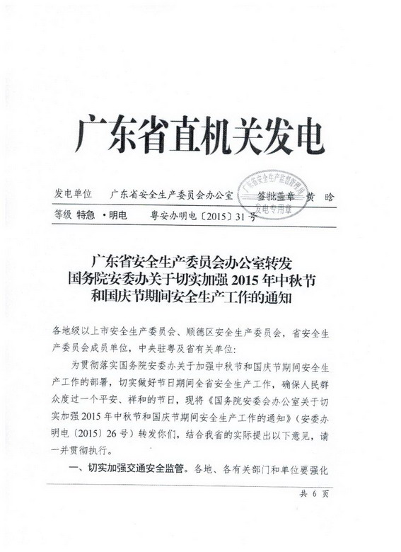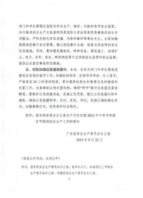 關于切實加強2015年中秋節和國慶節期間安全生產工作的通知