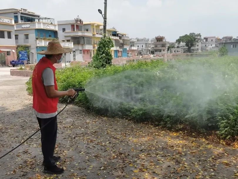 塘美村開展環境衛生整治,噴藥消殺滅蚊
