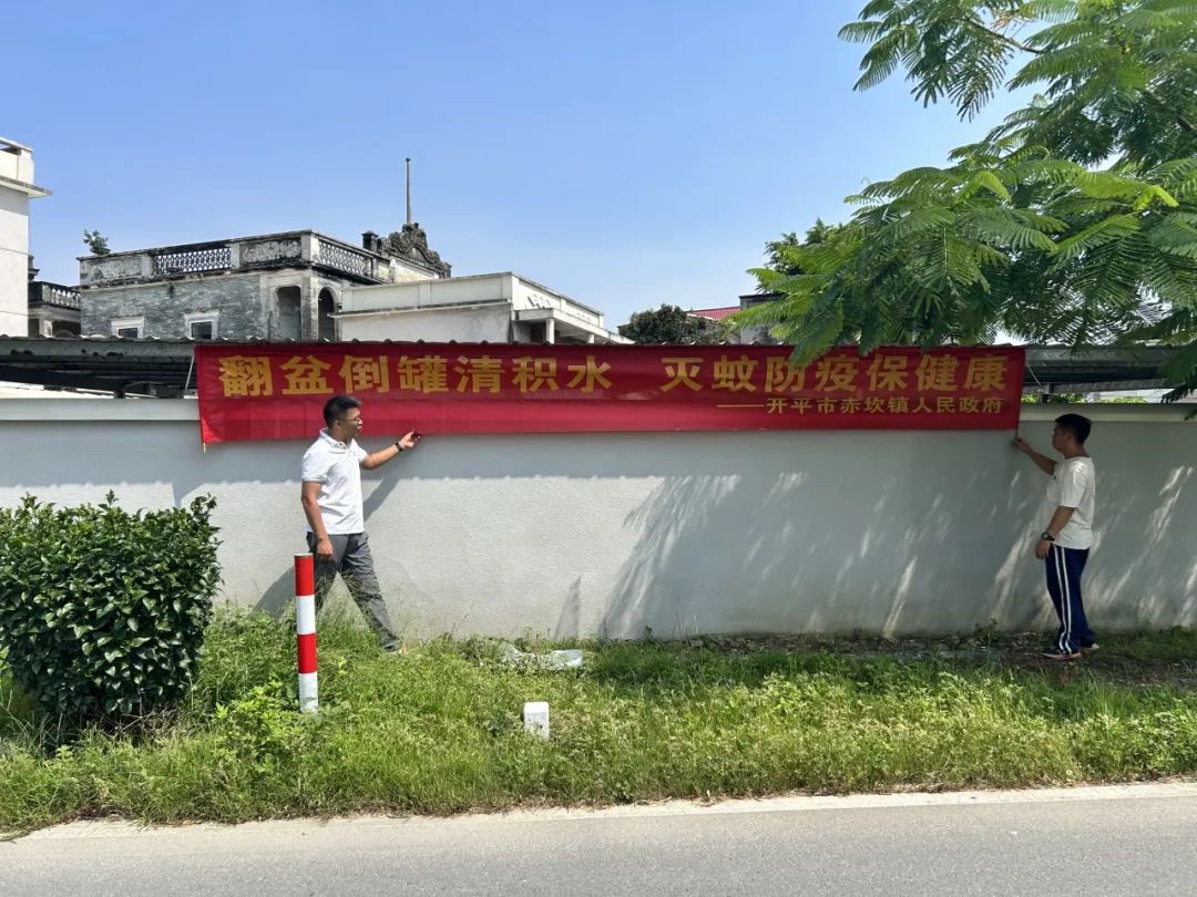 新建村開展環境衛生整治,噴藥消殺滅蚊 中廟村開展環境衛生整治,噴藥消殺滅蚊 南樓村開展環境衛生整治,噴藥消殺滅蚊 四、動員統一滅蚊消殺 根據市統一部署,動員廣大居民配合于7月28日18時一起在家中點燃蚊香、蚊片,赤坎華僑古鎮、開平不夜城(夢回開平-僑海華韻)等景區同時采取點燃蚊香、無人機噴灑滅蚊藥物等措施對古鎮及周邊場所進行滅蚊消殺。 居民們點燃蚊香進行滅蚊消殺 赤坎華僑古鎮進行滅蚊消殺 赤坎華僑古鎮無人機噴灑滅蚊藥物 五、廣泛宣傳防蚊知識 赤坎鎮組織印發宣傳海報400余張和橫幅25余條、錄制宣傳音頻發給個村(社區)開展防控登革熱、基孔肯雅熱知識宣傳,積極引導群眾全面清理衛生死角和積水環境,阻斷疾病傳播途徑,形成群防群控的強大合力。
