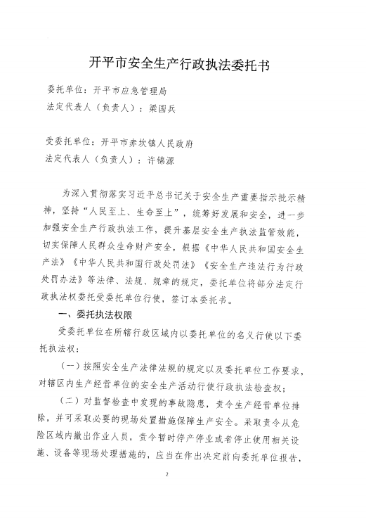 安全生產行政委托書(赤坎)