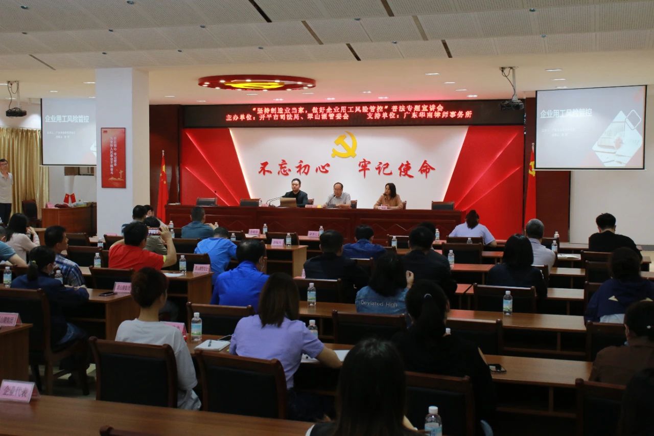 為貫徹落實上級關(guān)于高質(zhì)量發(fā)展的部署要求,提高企業(yè)的法律意識,推進園區(qū)經(jīng)濟高質(zhì)量發(fā)展,助力開平市爭創(chuàng)“百縣千鎮(zhèn)萬村高質(zhì)量發(fā)展工程”示范縣,4月12日,翠山湖管委會聯(lián)合開平市司法局、開平市公證處,邀請廣東華南律師事務(wù)所,共同舉辦“堅持制造業(yè)當家,做好企業(yè)公證、用工風險管控”普法專題宣講會,面向翠山湖園區(qū)近100家企業(yè)開展普法宣傳。