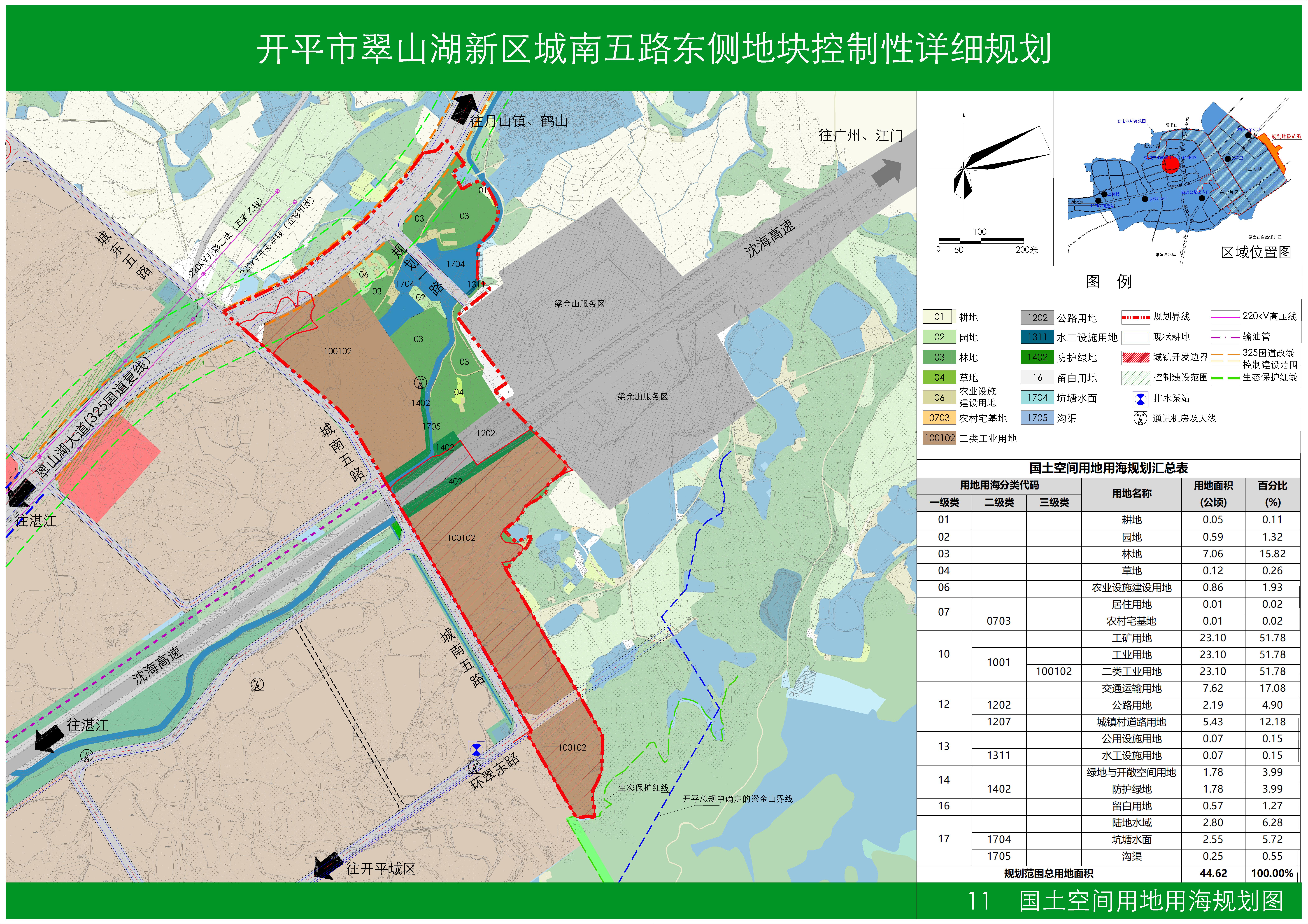 規劃方案位置與范圍:規劃總用地面積為44.62公頃,位于翠山湖新區城南五路東側,北至翠山湖大道,西臨城南五路,南接環翠東路,沈海高速在地塊中部經過。