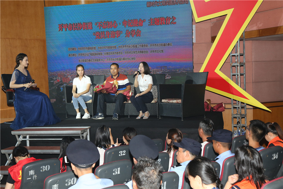 9月5日晚上,長沙街道“不忘初心、牢記使命”主題教育之“黨員身邊事”分享會在市人民會堂舉行,宣傳推廣一批先進典型,大力弘揚社會正能量。開平市領導龐正華、陳軍凱、顏海娜、李寶貞、黃力奔出席晚會。 市委副書記、組織部部長、政法委書記陳軍凱在致辭中肯定了長沙街道黨工委創新提出以“黨員身邊事”為抓手,通過“實在事、帶動人、成氛圍”,唱響“黨建引領揚正氣、黨員帶動聚正能”黨建主旋律等工作。他希望與會人員以參加這次分享會為契機,更好地從“黨員身邊事”和先鋒模范人物身上汲取力量,將身邊的正能量轉化成不懈前進的動力。同時,也希望全市廣大干部群眾從思想上、行動上更加自覺地學習先進、追趕先進、爭當先進,立足崗位、不忘初心、逐夢前行,全力搶抓粵港澳大灣區發展機遇,積極參與創建全國文明城市,為開平經濟社會加快發展作出新的更大貢獻。 在“黨員身邊事”分享會前,出席晚會的領導先后向獲得2019年長沙街道“十佳教師”、開平市2019年度第一季度、第二季度“開平好人”、“江門市優秀共產黨員、優秀黨務工作者、先進基層黨組織”等榮譽稱號的個人、組織頒獎,對他們為全市經濟社會和各項事業的發展作出積極貢獻表示感謝。 隨后,分享會通過“讓身邊人說身邊事,用身邊事帶身邊人”的方式,以觀看視頻、與主持人互動等形式,讓與會人員聆聽、了解長沙街道10件“黨員身邊事”,生動詮釋和真實傳遞了社會正能量。 開平市委書記龐正華和長沙街道黨工委負責人共同為他們頒獎。 分享會上,還穿插了具有本土特色文化的歌、舞等表演,寓意全市上下,干群同心,努力譜寫僑鄉建設新篇章。