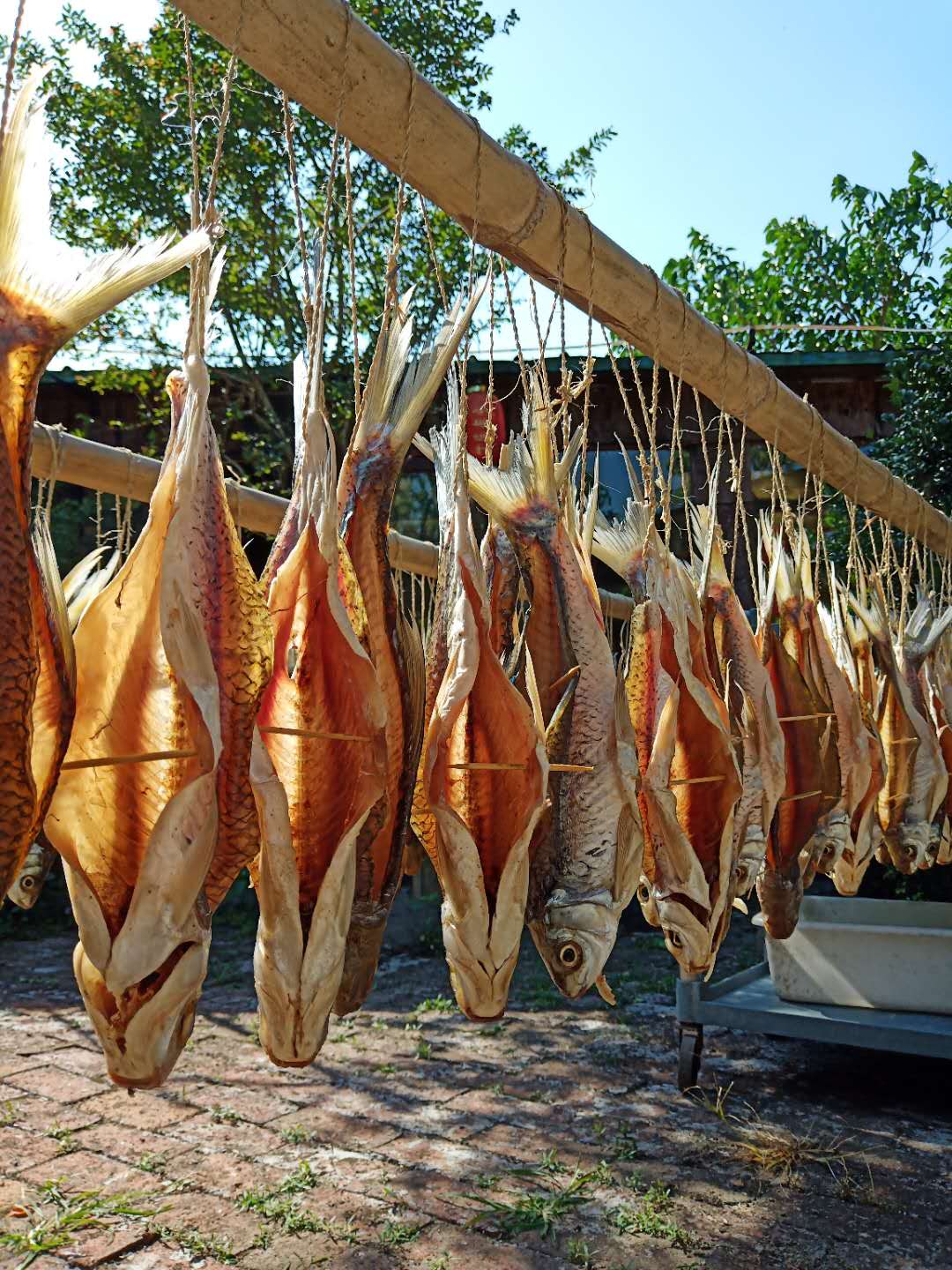 2021年2月入選江門市第八批市級非物質文化遺產代表性項目名錄 一、項目簡介 每當深冬臘月,北風勁吹時,在開平的潭江和蒼江岸邊都有一道別樣的風景——疍家人們把打撈上來的鯪魚,在船頭,或在臨水岸邊,一排排地掛曬風干,做成鯪魚干。 這種經過“雙曬雙制”而成的鯪魚干,成為開平疍家傳統美味,成為開平一個地方特產,流傳了數百年。 疍家人在珠三角一帶存在的歷史非常長,而開平市瀕臨南海,域內河網密布,有潭江、蒼江等數百公里的入海河道。隨著外來疍家人遷入開平,便形成了以捕魚為生的開平疍家群體,正因為“靠山吃山,靠水吃水”,開平疍家人就過著以在內河捕魚為生的獨特水上生活。 在以前,疍家人不被允許上岸生活,近海取材、即捕即食是他們賴以生存的方式。疍家人每天都會收獲大量新鮮的海魚,為了更好地保存下去,他們往往會選擇將海魚曬制成魚干。開平疍家美食中使用這種烹飪技法的典型代表菜式是“鯪魚干”。開平疍家人常年居于水上,捕到上好的鯪魚時,將其放在船只甲板曬制,在江風和驕陽的共同作用下,制作出無任何人工添加劑、肉質緊實耐嚼的鯪魚干。 其中,曬制鯪魚干,成為了他們一種獨特的技藝和習俗。 開平疍家雙曬鯪魚干作為特色食材,在開平早已是家喻戶曉了。 雙曬鯪魚干,選料嚴格,一般都是選用剛剛捕獲的,體型較大的野生鯪魚。 開平疍家雙曬鯪魚干與其他的魚干不同,制法獨特,需要經過“雙曬雙制”,共八道工序。首先經過殺魚、腌味、清洗、第一次風干;然后再次清洗、浸醬、第二次風干。 開平疍家人曬制鯪魚干,都是在船頭,或者是在臨水的岸邊,太陽光足,江風大,特別容易干。經過“雙曬雙制”的鯪魚干,魚干身上油脂盡去,鹽份飽滿,魚干肉質更干爽緊密,味道鮮美獨特。 鯪魚富含豐富的蛋白質、維生素A、鈣等營養元素,肉質細嫩、味道鮮美,曬制出的鯪魚干別具風味。 開平疍家雙曬鯪魚干有多種吃法,例如可以烹制出“疍家雙曬鯪魚干蒸臘味”、“疍家雙曬鯪魚干炒苦瓜”、“?豆豉蒸疍家雙曬鯪魚干五花肉”等獨特菜式,魚香濃郁,美味無比,無論是搭配干飯還是稀飯,都是開胃下飯的首選,深受食客歡迎。同時,也滿足了成日在江中顛簸勞累的疍家人對生活美食的樸素追求。 開平疍家雙曬鯪魚干,是聞名遐邇的開平地方特產,深受食客歡迎。鯪魚干曬干后,可以保存很久,很多開平的華僑華人每次回鄉后再遠赴異國他鄉時,都不忘帶上幾條鯪魚干,以此慰藉他們的鄉愁。同時,華僑華人們也會把開平疍家雙曬鯪魚干帶到異地他鄉,作為一種手信禮物,帶給當地的朋友嘗試,把僑鄉的味道分享給世界各地的人群。 然而,隨著疍家人陸續上岸,疍家群體逐漸減少,“雙曬雙制”鯪魚干的獨特技藝,已經越來越少有人懂得。 現今,在開平,生活在蒼江長沙樓岡河段的溫、周、徐等幾大姓氏的疍家人,還會按此技藝曬制鯪魚干。 雙曬鯪魚干的產量,也在逐年減少。它們被開平群眾以及遠近游客所購買,成為餐桌上一道道鮮醇美味的菜式。 二、歷史淵源 (一)開平疍家的歷史起源 疍家是我國沿海水上居民的一個統稱。疍家人之所以被稱為“疍”,最為常見的說法是沿襲《太平寰宇記》的記載,即最初漢人見疍家人使用一種特殊形式船只,其船首尾皆尖高,船身平闊,其形似蛋,故稱“疍船”,又因其生活在船上,以船為家,故又稱“疍家”、“疍戶”或“疍民”。 疍民在珠三角一帶存在的歷史非常長,他們以船為家,居住在珠三角的河道上,或者沿岸居住在“茅寮”中。開平市瀕臨南海,域內河網密布,有潭江、蒼江等數百公里的入海河道。隨著外來疍家人遷入開平,便形成了以捕魚為生的開平疍家群體,其中以姓周、徐、溫等大姓的疍家人居多。正因為“靠山吃山,靠水吃水”,開平疍家人就過著以在內河捕魚為生的獨特水上生活。 開平疍家人在長期海上漂泊與大自然的斗爭中、在漫長的歷史積淀中,逐漸形成帶有濃郁特色的飲食,是疍家飲食文化中最具特色的一部分。 開平的潭江和蒼江水產豐富,盛產“四大家魚”、河蝦、蜆、羅非魚、水面魚等,給予了開平疍家人各式各樣的河鮮食材,而他們也用自己的智慧將這母親河的饋贈烹調成最獨特的美味。? (二)開平疍家雙曬鯪魚干成為開平特色美食 在以前,疍家人不被允許上岸生活,近海取材、即捕即食是他們賴以生存的方式。疍家人每天都會收獲大量新鮮的海魚,因為當時沒有冰箱等設備,為了更好地把魚保存下去,他們往往會選擇將海魚曬制成魚干。 開平的疍家,捕到上好的鯪魚時,將其放在船只甲板曬制,在江風和驕陽的共同作用下,制作出無任何人工添加劑、肉質緊實耐嚼的精品鯪魚干。 在開平,因為天時地利,一年四季都可以制作疍家雙曬鯪魚干。尤其以深冬臘月,北風勁吹時為甚。疍家雙曬鯪魚干選上最為肥美的鯪魚,自然腌制曬干,成就一道開平疍家菜傳統美味。鯪魚富含豐富的蛋白質、維生素A、鈣等營養元素,肉質細嫩、味道鮮美,曬制出的鯪魚干別具風味。 開平疍家雙曬鯪魚干作為特色食材,在開平早已是家喻戶曉了。 雙曬鯪魚干,選料嚴格,一般都是選用剛剛捕獲的,體型較大的野生鯪魚。 開平疍家雙曬鯪魚干與其他的魚干不同,制法獨特,需要經過“雙曬雙制”,首先經過清洗、腌味、壓水、第一次風干;然后再次過水、浸醬、第二次風干。 開平疍家人曬制