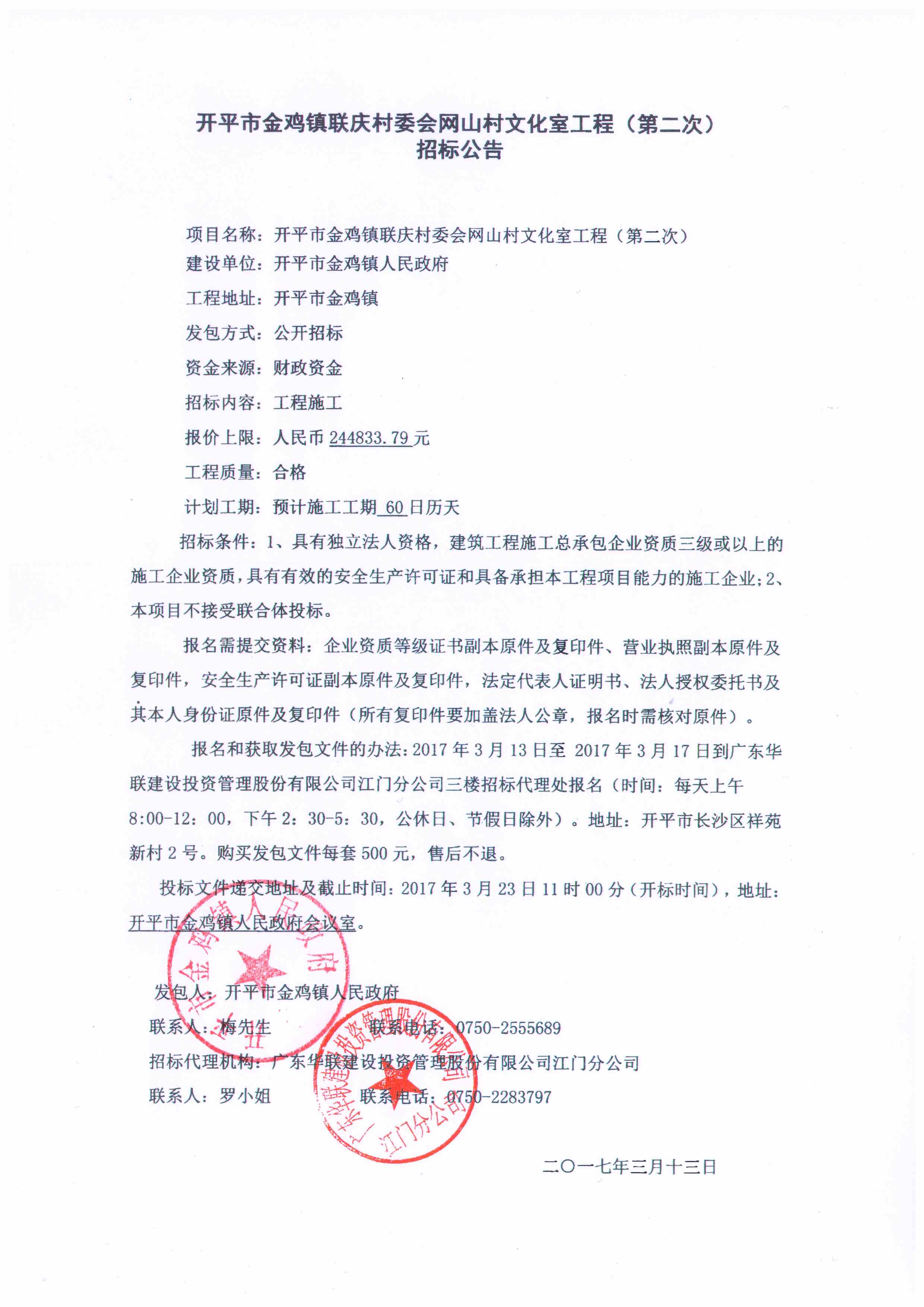 開平市金雞鎮聯慶村委會網山村文化室工程(第二次)