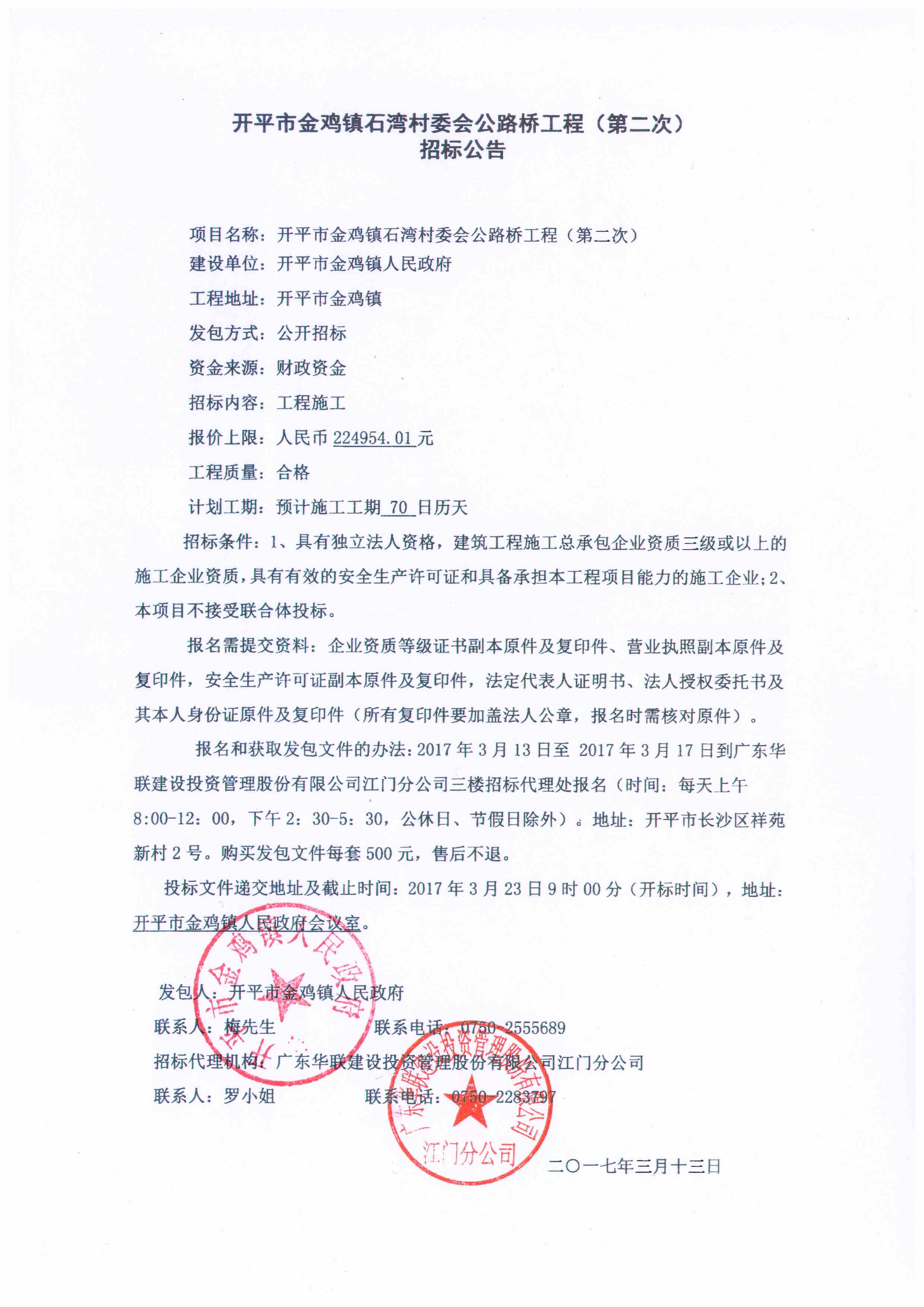 開平市金雞鎮石灣村委會公路橋工程(第二次)