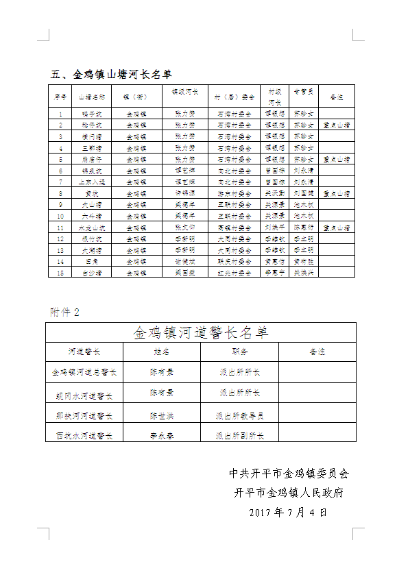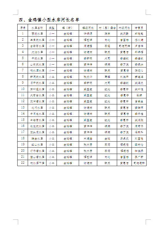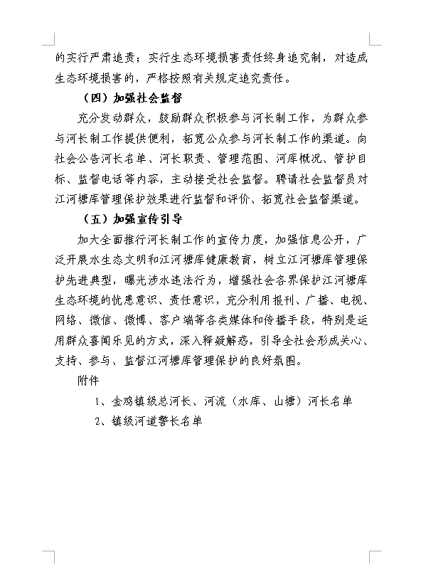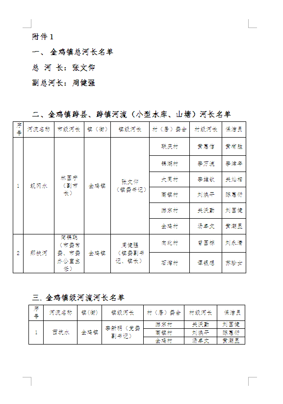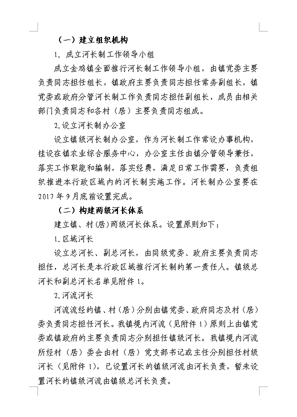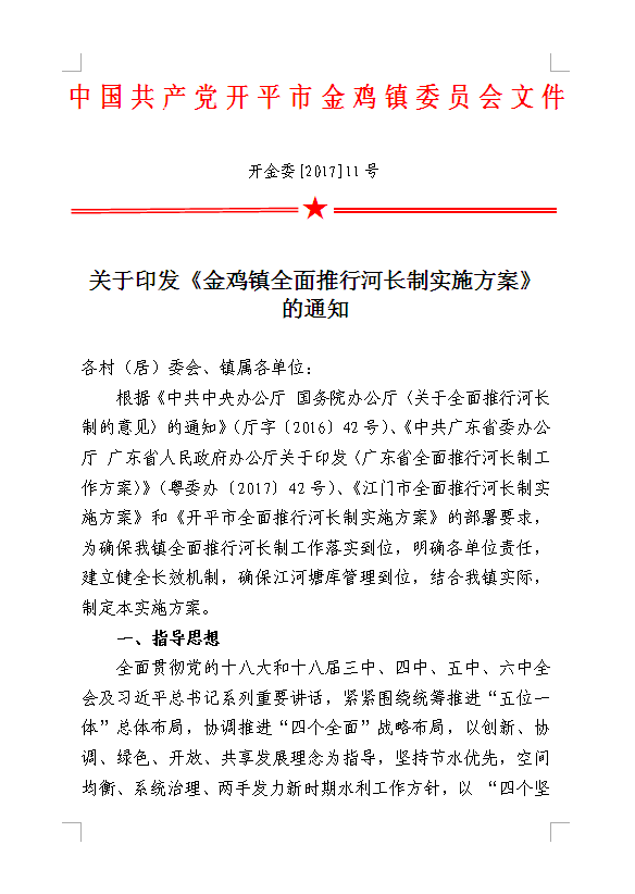 關于印發《金雞鎮全面推行河長制實施方案》的通知