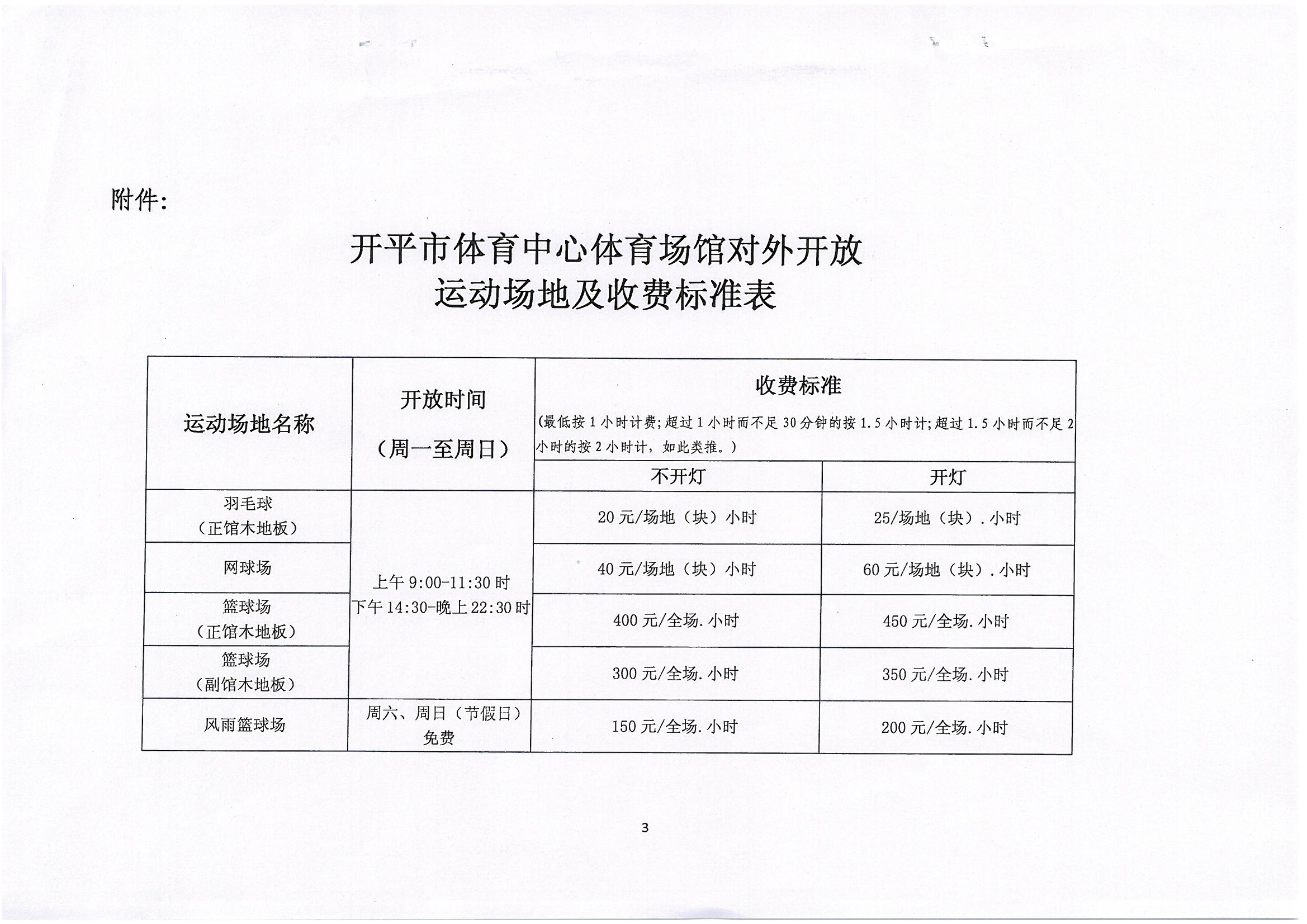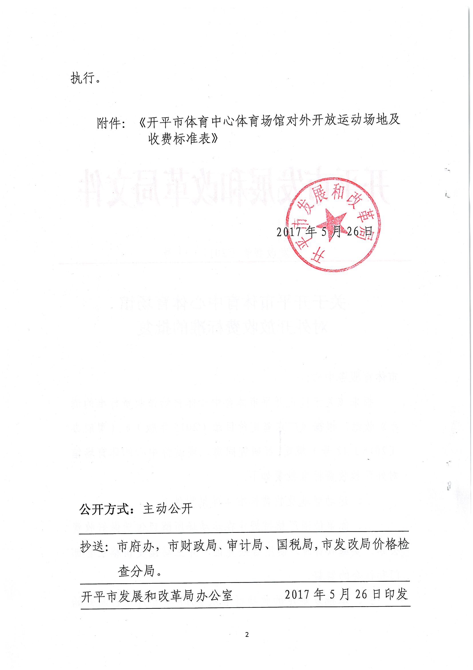 開發改費管〔2017〕11號 關于開平市體育中心體育場館對外開放收費標準的批復