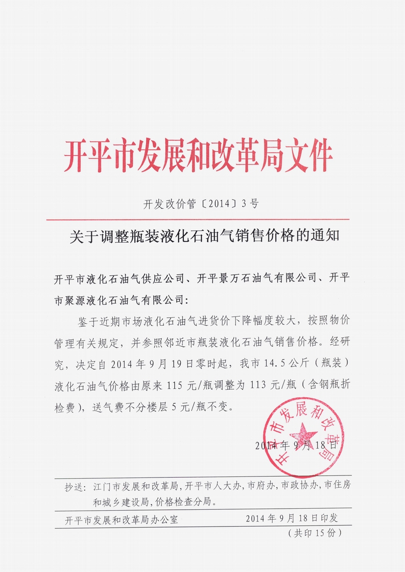開發(fā)改價(jià)管[2014]3號(hào) 關(guān)于調(diào)整瓶裝液化石油氣銷售價(jià)格的通知