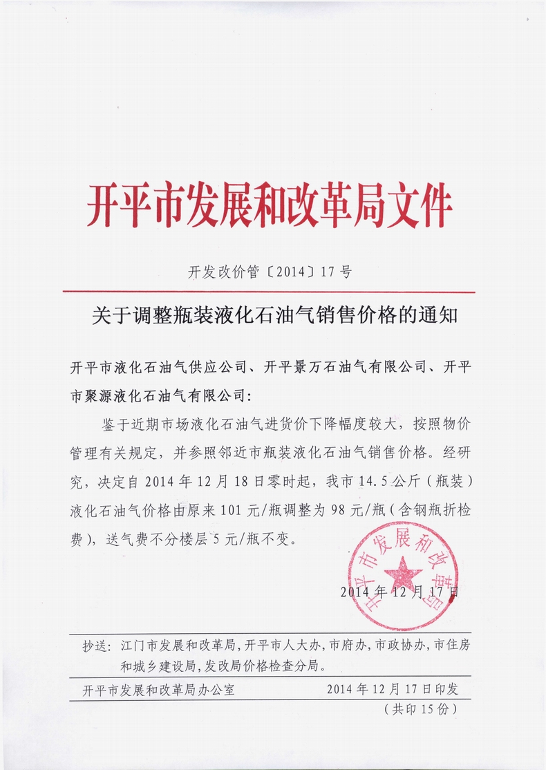開發改價管[2014]17號 關于調整瓶裝液化石油氣銷售價格的通知