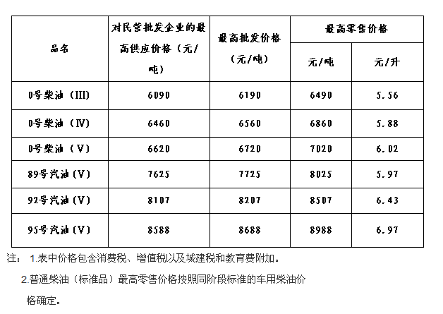 根據(jù)國家成品油價格形成機制,結合近一段時期國際市場油價變化情況,國家發(fā)展改革委決定自2016年12月14日24時起提高國內成品油價格,即在現(xiàn)行價格的基礎上,汽、柴油價格每噸分別提高435元和420元。這次成品油價格調整后,我省國V標準92號汽油從6.08元/升提高到6.43元/升,每升提高0.35元;國V標準95號汽油從6.59元/升提高到6.97元/升,每升提高0.38元;國V標準0號柴油從5.66元/升提高到6.02元/升,每升提高0.36元。