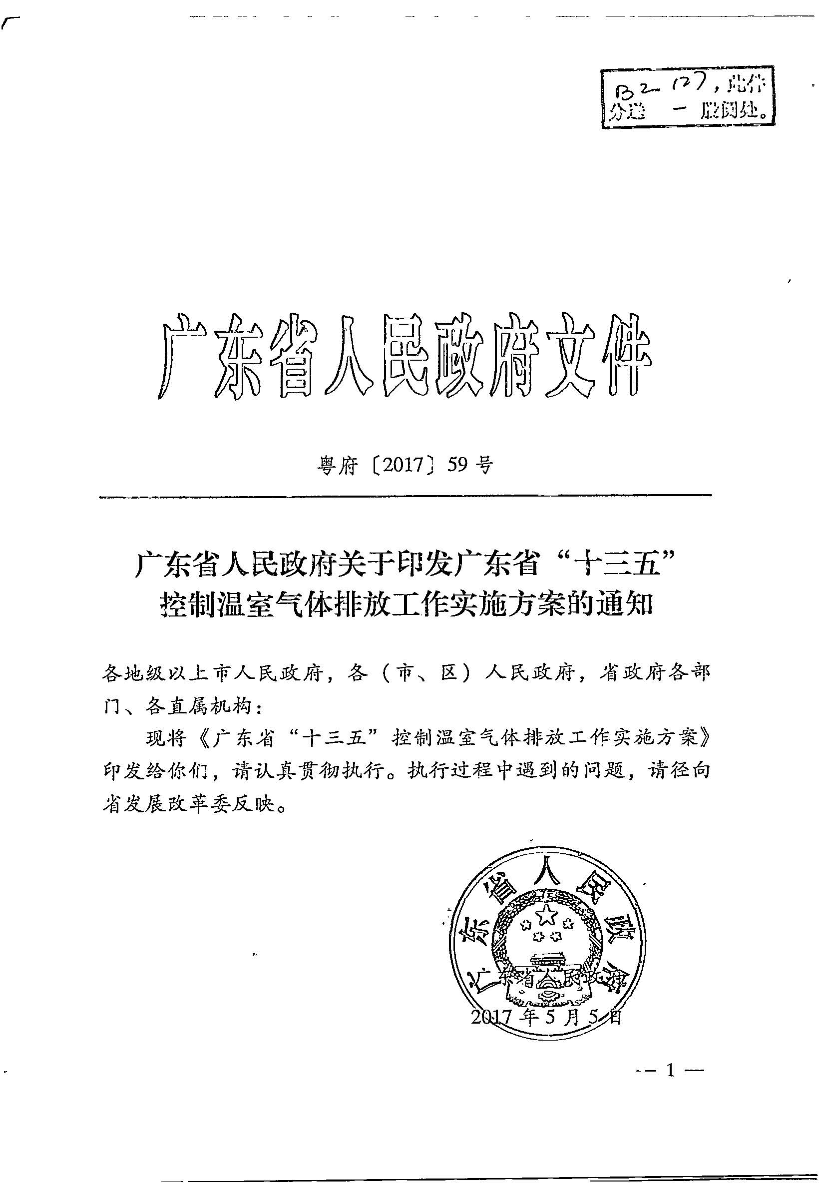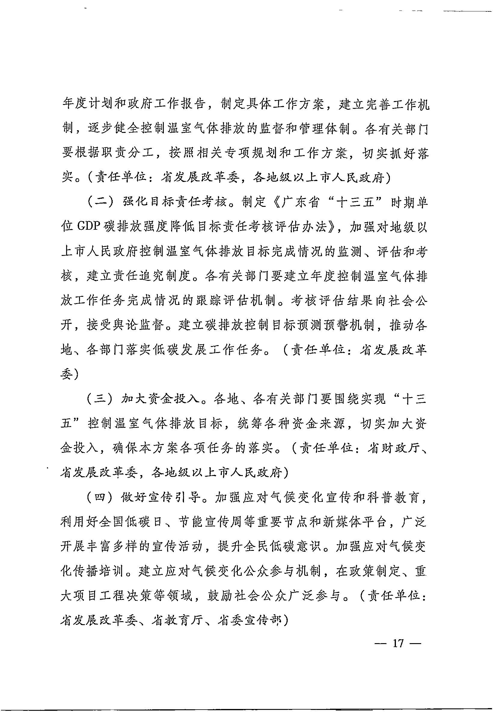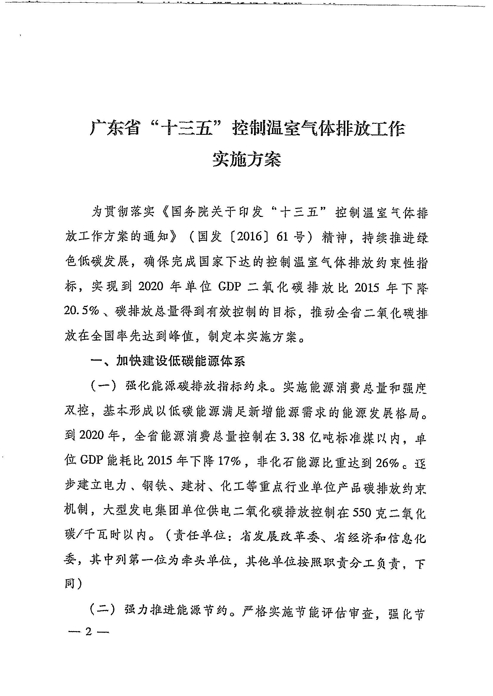 關于印發廣東省“十三五”控制溫室氣體排放工作實施方案的通知