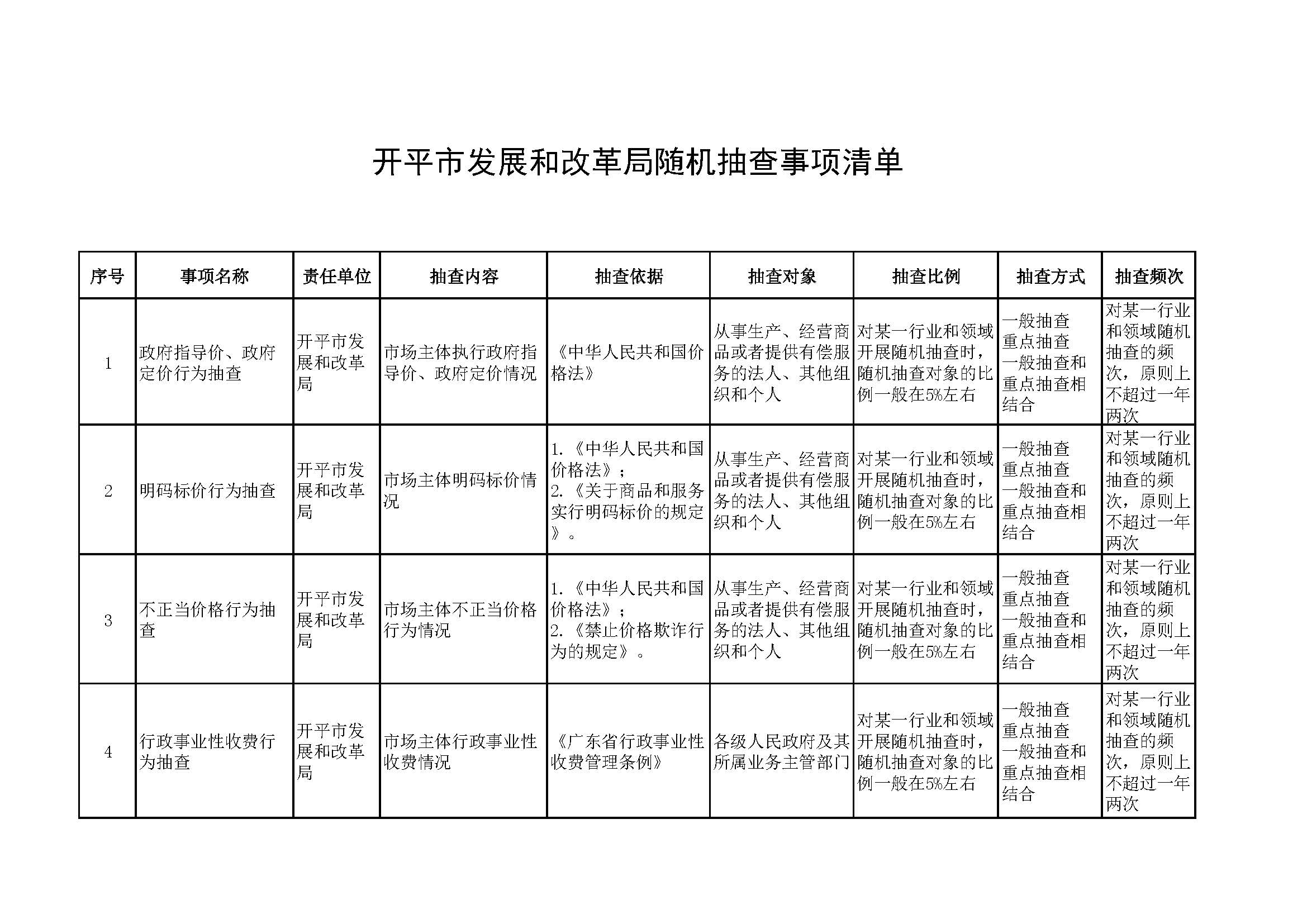 開平市發(fā)展和改革局隨機(jī)抽查事項(xiàng)清單