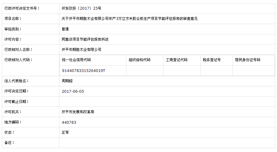 關于開平市期勝木業有限公司年產3萬立方米膠合板生產項目節能評估報告的審查意見