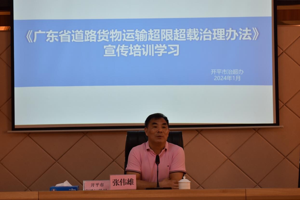 2024年1月11日,開平市治超辦組織市治超工作領導小組各成員單位召開2024年1月1日新出臺《廣東省道路貨物運輸超限超載治理辦法》宣貫培訓會議。會議主要分為兩部分進行,一是由市治超辦對《廣東省道路貨物運輸超限超載治理辦法》的立法意見及相關條文進行解讀;二是市治超辦副組長、市交通運輸局黨組書記、局長張偉雄同志講話。治超工作領導小組各成員單位負責人及業務骨干參加會議。