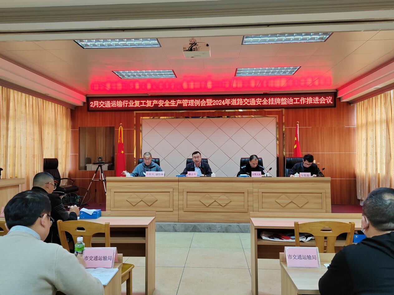 為進一步統籌推進我市交通運輸行業道路交通安全掛牌整治工作和2024年春節期后復工復產安全生產、消防安全工作,確保全市交通運輸行業安全生產形勢持續穩定,2月23日下午,我局召開2月份交通運輸行業復工復產安全生產管理例會暨2024年道路交通安全掛牌整治工作推進會議。謝志軍副局長,謝偉林三級主辦,責任股室、執法大隊、直屬單位和市交警大隊以及各客運企業(含網約車)、客運站、城市公交企業、出租車企業、危險貨物運輸企業、10輛車以上的貨運企業、水上運輸企業和港口碼頭企業有關負責人或負責同志等共52人參會。