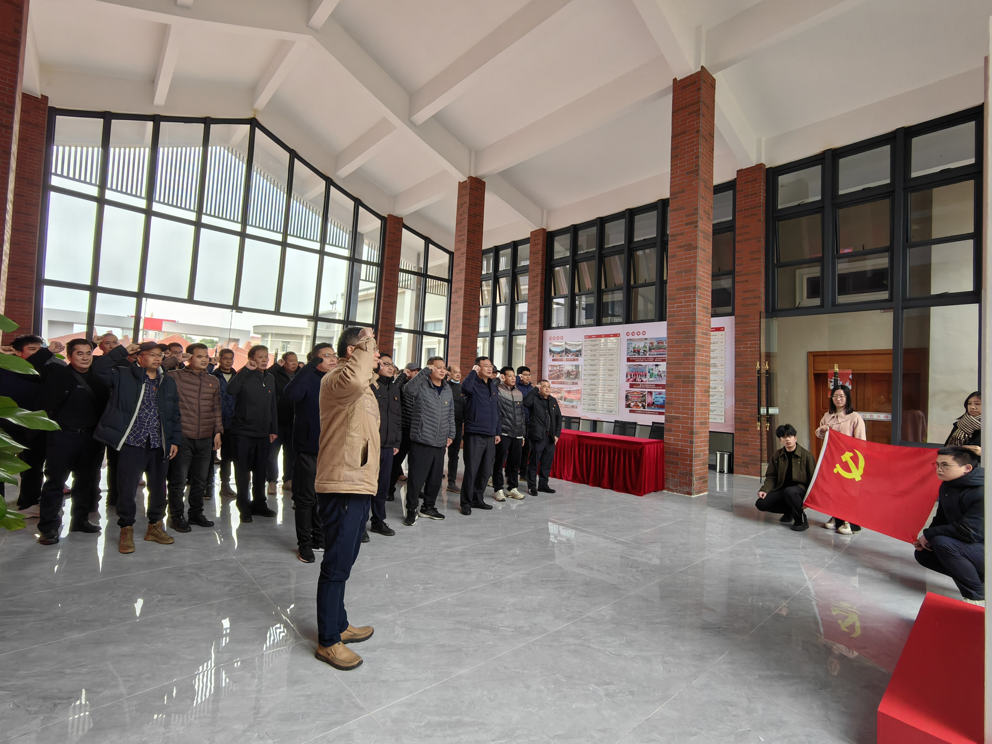(參加活動(dòng)的黨員們重溫入黨誓詞)