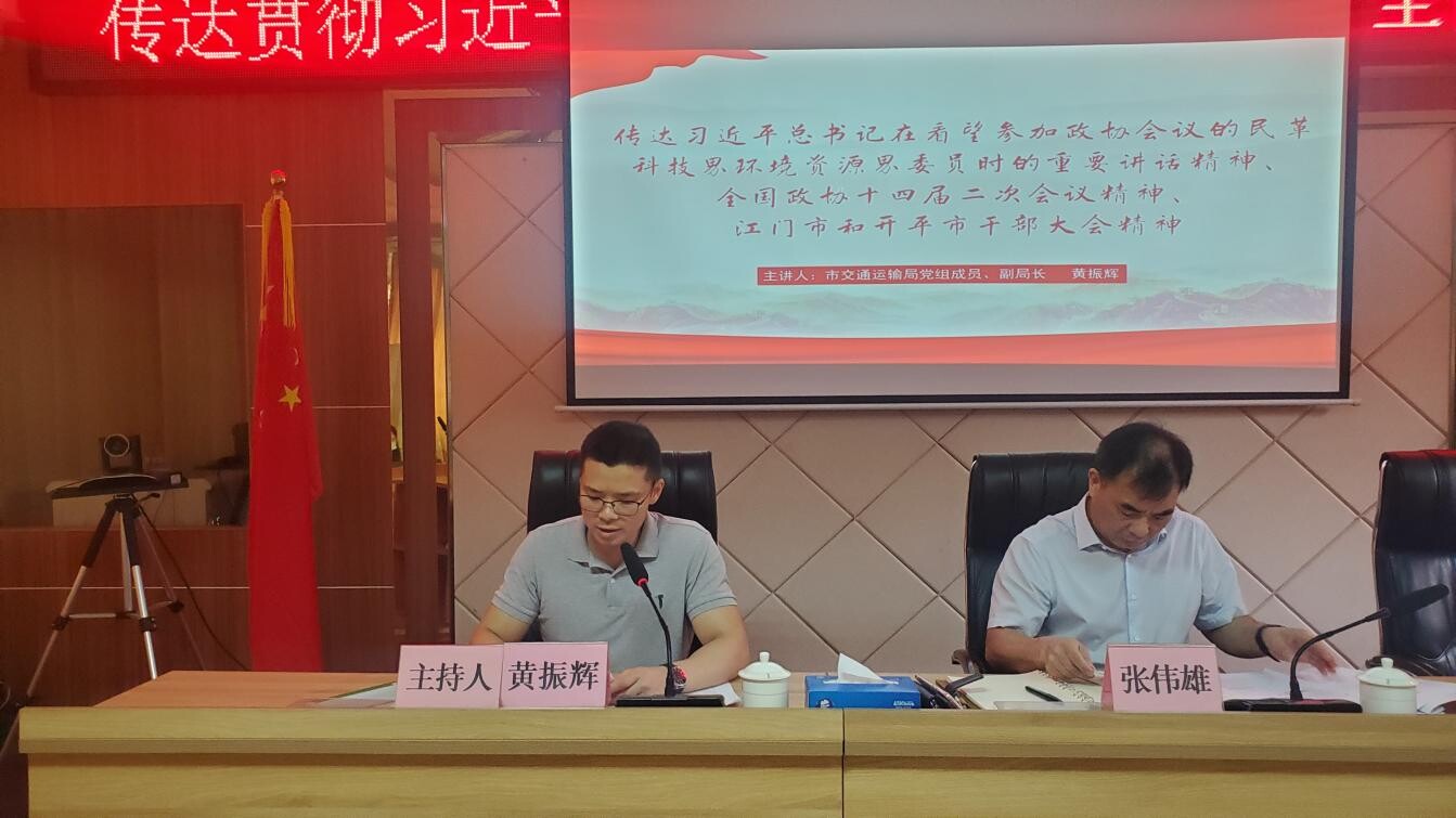 3月25日上午,開平市交通運輸局組織召開黨組(擴大)會議,傳達貫徹習近平總書記在全國兩會期間、中央政治局會議上的重要講話精神和全國兩會精神,貫徹落實省、江門和開平市傳達貫徹習近平總書記重要講話精神暨全國兩會精神干部大會、十四屆全國人大二次會議廣東省代表團專題學習會精神以及有關會議精神,學習新修訂的《中國共產黨巡視工作條例》,研究部署市交通運輸局學習宣傳貫徹落實意見。市交通運輸局領導班子、協管領導,各股室(大隊)及下屬事業單位負責人參加。