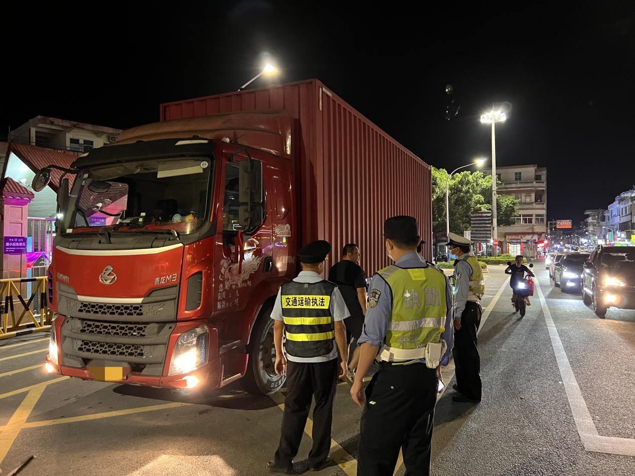 (執(zhí)法人員聯(lián)合交警開展夜間執(zhí)法 查處貨車超限超載等違法行為)