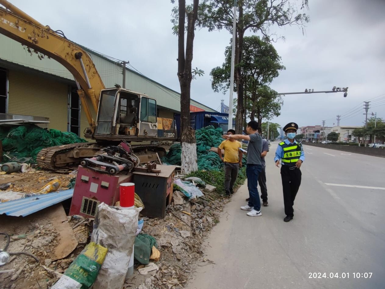 (執(zhí)法人員在S385線對在路肩處擺放廢品垃圾進行整治)