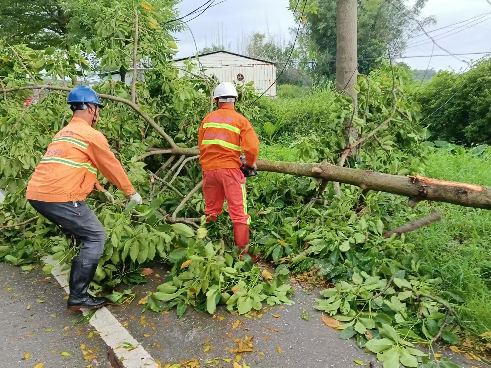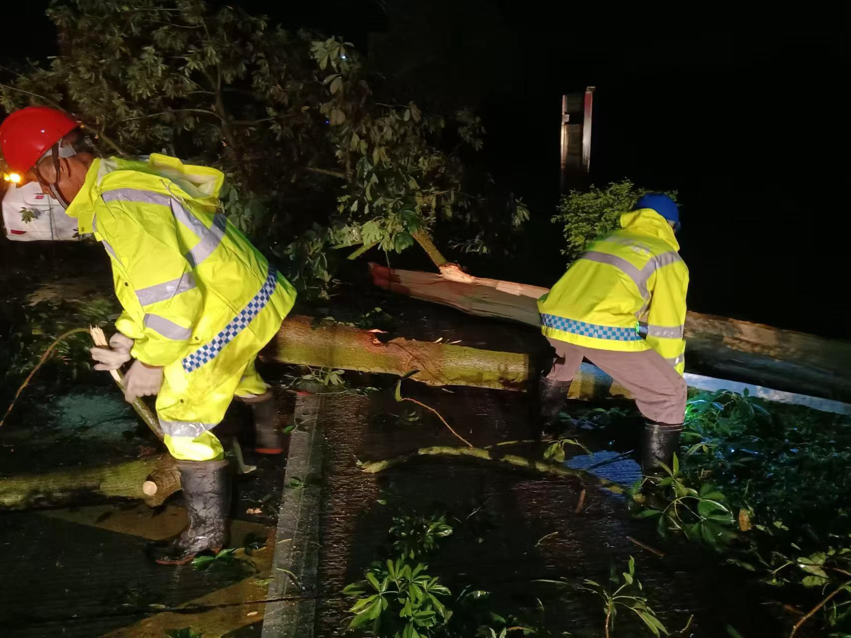 道班養(yǎng)護(hù)人員冒雨清理段倒伏樹木