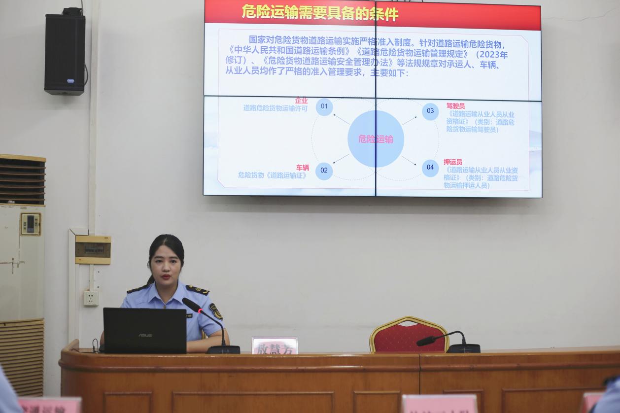 市交通運輸局女子執法隊強化安全教育培訓,聯合交通運輸服務中心、執法一大隊、執法三大隊對24家普貨及危貨企業的負責人、從業人員開展線下專題培訓。根據危化品運輸的特殊性,圍繞危化品依法運輸裝載、交通事故預防、應急處置措施落實等方面進行了安全宣傳,要求駕駛員、從業人員嚴格遵守道路交通安全法律法規,認真學習危化品運輸安全知識,深刻認識到非法運輸危險貨物帶來的嚴重后果,切實履行安全管理職責,著力提高應急處置能力,確保道路交通安全有序。