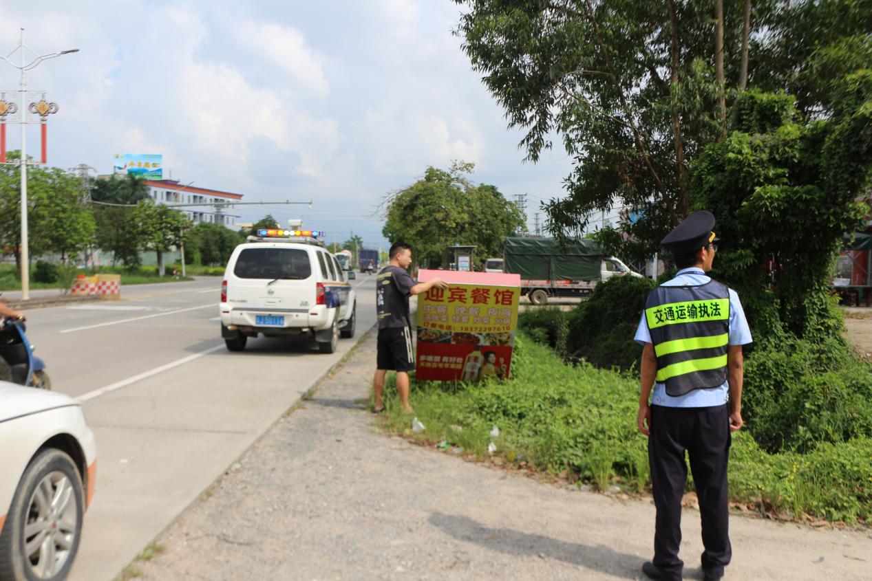 此次行動共派出路政管理人員和養護工人20人次,執法、養護車輛4輛,整治占用公路用地擺放燈箱廣告38個、非公路標志15個,勸離擺攤商販3個,派發宣傳單張64份,有效對占道經營的商家、群眾進行勸導教育和宣傳,提高路邊商戶道路交通安全意識,杜絕占道經營行為,確保公路安全通暢。
