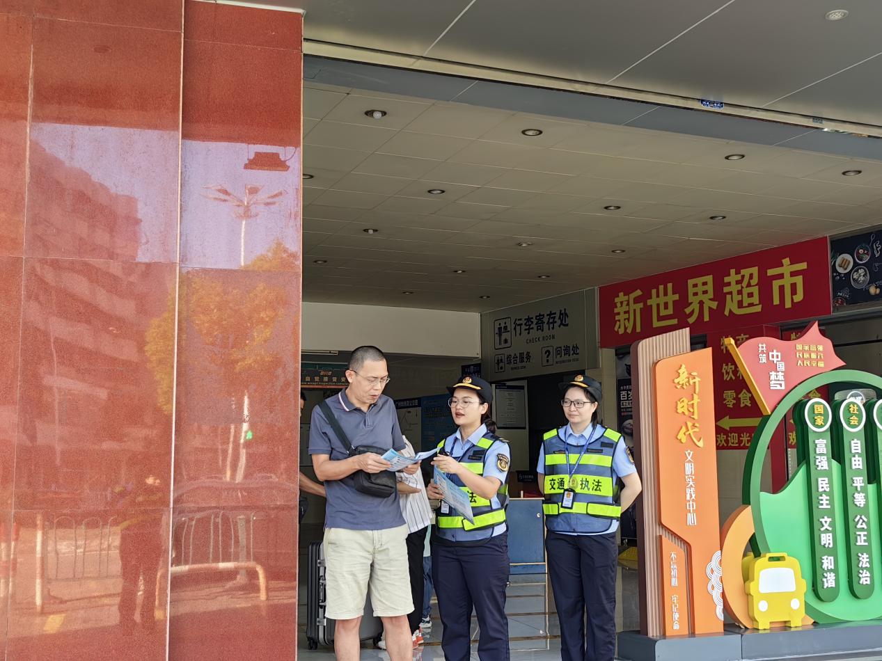 三是貫徹執法為民理念,全方位提升交通出行服務品質。交通執法人員在嚴格開展執法巡查的同時,積極強化服務舉措,在檢查車輛時為旅客出行做好引導工作,為群眾提供咨詢引導、秩序維護、安全勸導等便民服務,通過“執法+普法”的模式,積極開展交通運輸法律法規知識宣傳,指引其乘坐合規車輛,解決群眾實際需求,讓市民群眾切實感受到交通運輸行政執法的溫度。