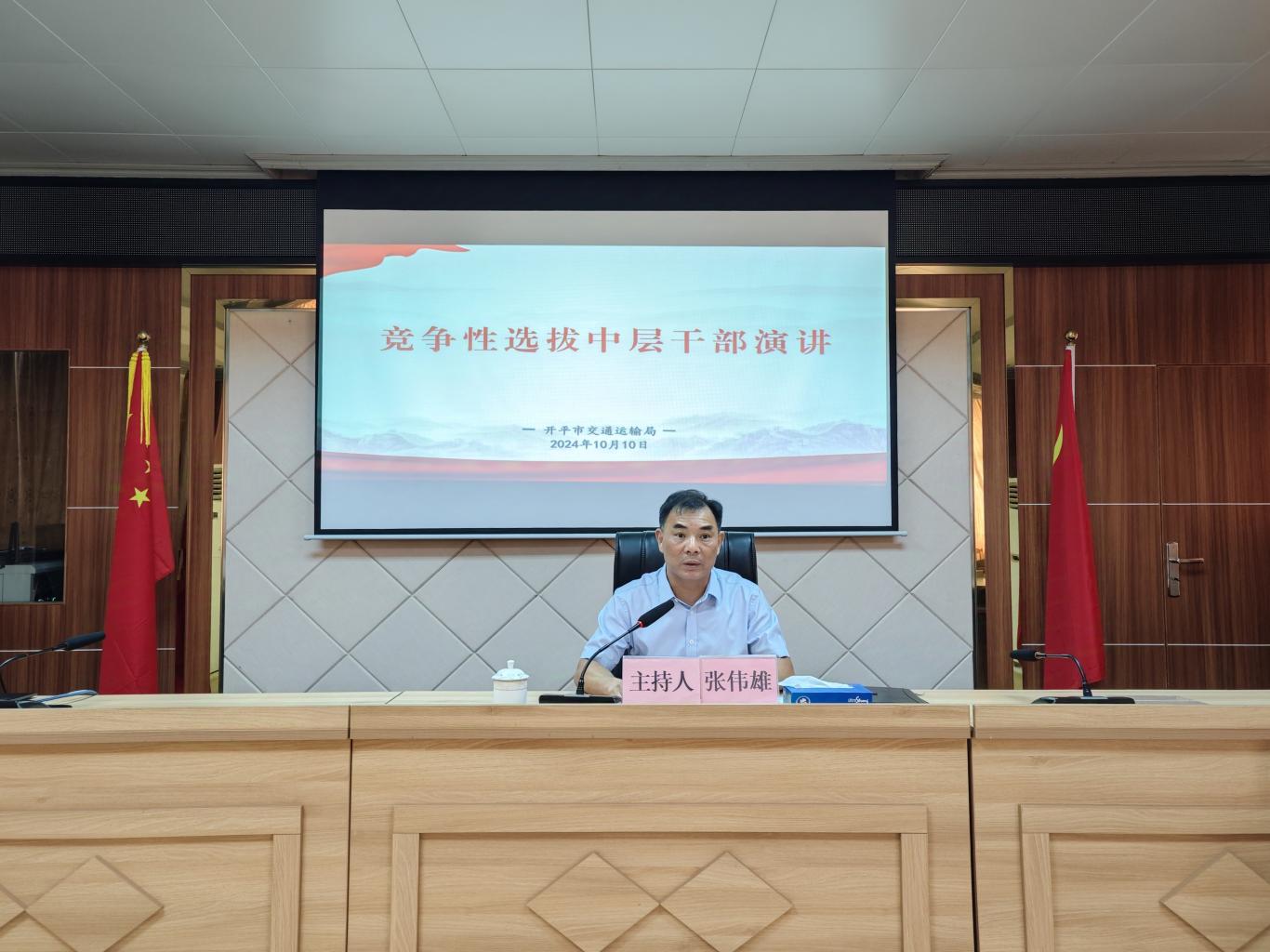 為貫徹落實習近平總書記關于干部工作的重要論述及中央關于加大競爭性選拔干部工作力度精神,進一步增強中層干部力量,市交通運輸局創新舉措,通過采取競爭性選拔方式對空缺的行政執法類執法一大隊副大隊長職位開展競選。按照選拔程序,10月10日下午,市交通運輸局召開競爭性選拔中層干部演講會,局黨組成員、協管領導、局機關全體公務員及下屬事業單位的主要負責人參加會議。