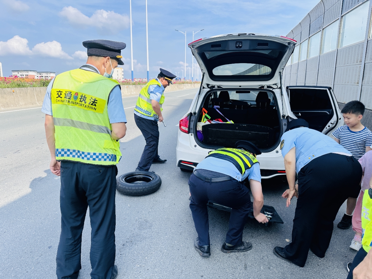 高效處置險情,消除道路風險。5月4日下午,交通運輸執(zhí)法人員在環(huán)城公路西環(huán)段高架橋巡查時,發(fā)現(xiàn)一輛小轎車因左后輪爆胎停靠在右側(cè)路面,車主未按規(guī)定擺放三角警示牌,存在嚴重安全隱患。執(zhí)法人員迅速設(shè)置警示標志,協(xié)助更換備用輪胎,并護送車輛至合規(guī)汽修廠檢修,及時消除道路通行風險。