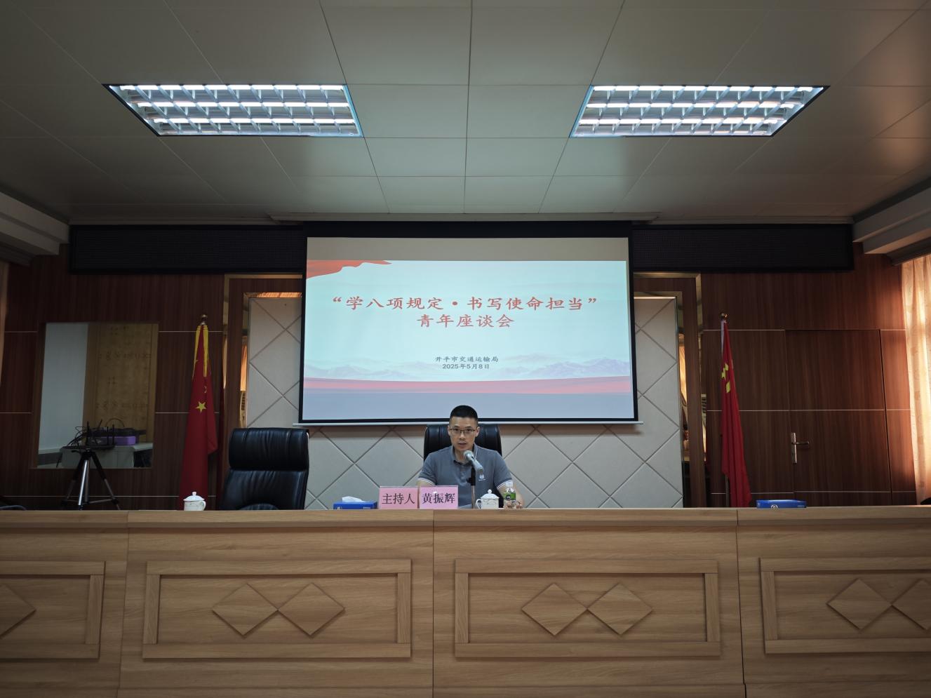 為扎實開展深入貫徹中央八項規定精神學習教育,傳承和弘揚“五四”精神,進一步團結青年干部,5月8日下午,市交通運輸局召開“學八項規定·書寫使命擔當”青年座談會。局黨組書記、局長張偉雄出席會議并講話,局機關及下屬單位青年干部代表共36人參會。