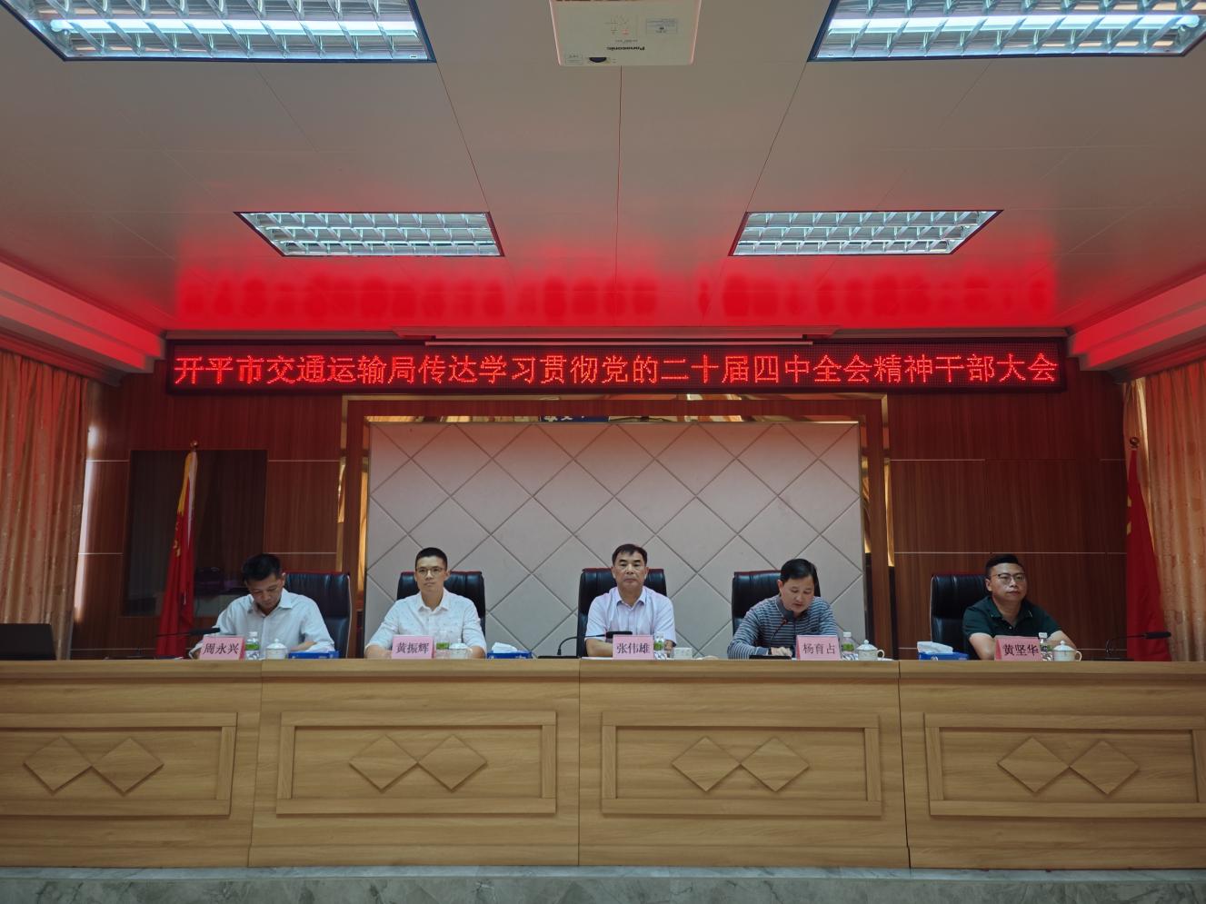 10月30日上午,開平市交通運輸局召開傳達學習貫徹黨的二十屆四中全會精神干部大會,深入學習領會習近平總書記在黨的二十屆四中全會上的重要講話精神和全會精神,全面貫徹落實省、江門市、開平市委常委會及干部大會精神,研究部署全局貫徹落實舉措,動員全體干部職工迅速把思想和行動統(tǒng)一到全會精神上來,推動交通運輸事業(yè)高質量發(fā)展。局領導、機關各股室、大隊及直屬事業(yè)單位負責人參加會議。