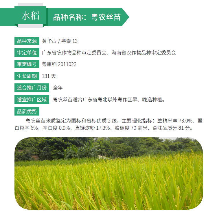 2019年農(nóng)業(yè)主導(dǎo)品種:粵農(nóng)絲苗