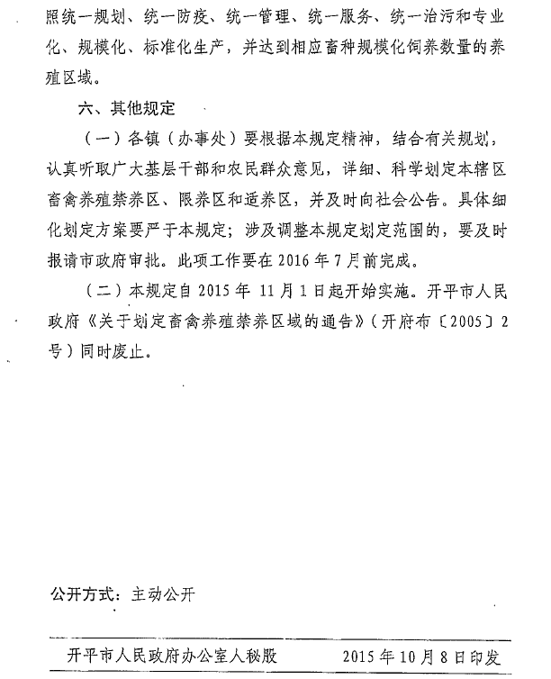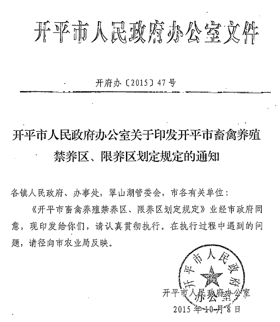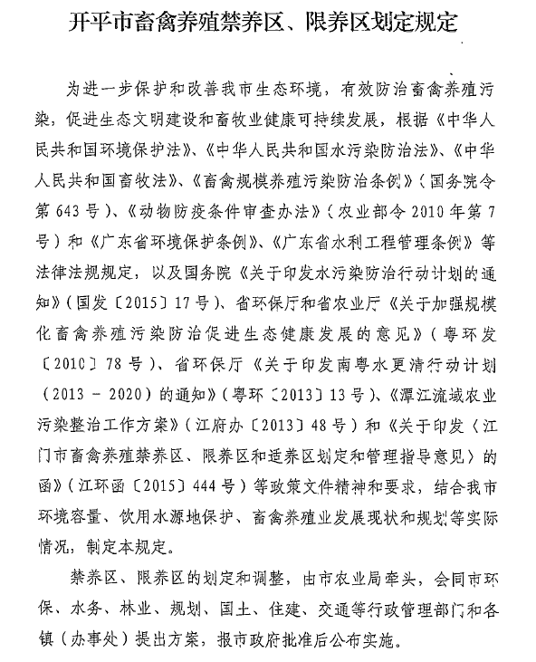 關于印發開平市畜禽養殖禁養區、限養區劃定規定的通知