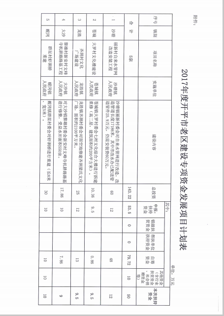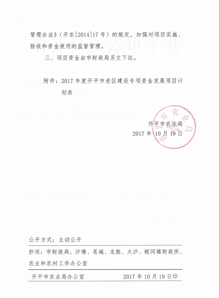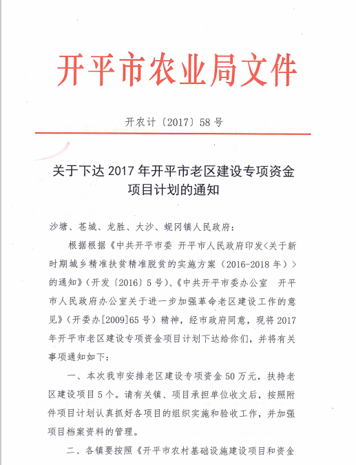 關于下達2017年開平市老區建設專項資金項目計劃的通知