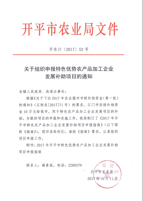附件:2017年開平市特色優勢農產品加工企業發展補助項目申報指南x_1514612755921.docx