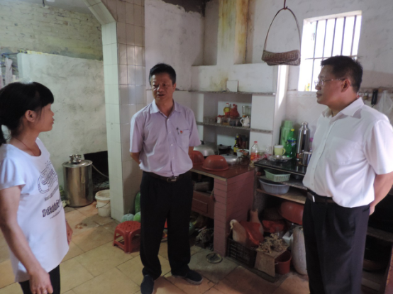 在臺洞富北村慰問勞牛仔家庭時,肖章興詳細詢問了其家庭生活和工作情況。勞牛仔妻子因長期患病,靠他一人打工收入,還有兩個女兒,一女兒在沙塘學校讀初中,另一女兒在廣州讀大專三年級,家庭生活比較困難。近年來,得到精準扶貧工作的幫扶,一家人表示感謝共產黨、感謝人民政府和駐村工作隊的幫助。肖章興鼓勵他們樹立信心,注意保重身體,爭取早日實現脫貧。
