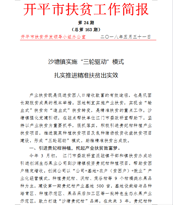 開(kāi)平扶貧簡(jiǎn)報(bào)2018年第24期(總第163期)