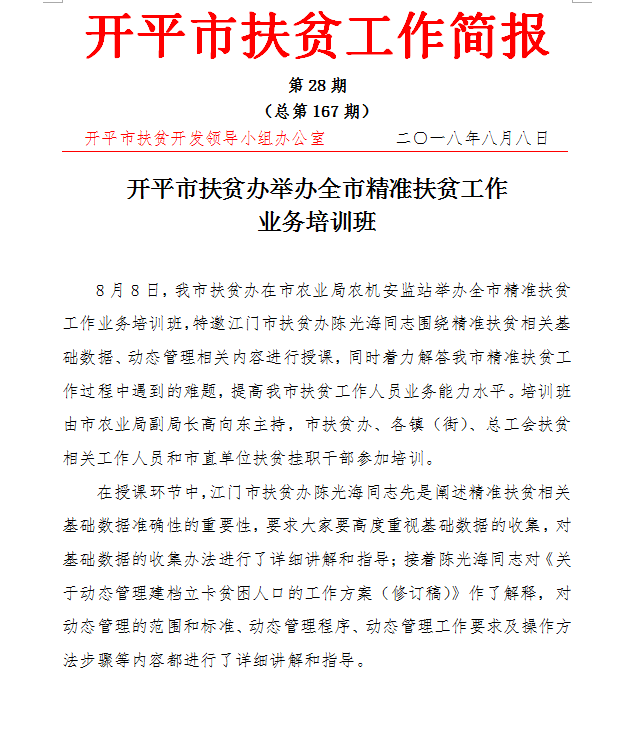 開平市扶貧工作簡報第28期(總第167期)