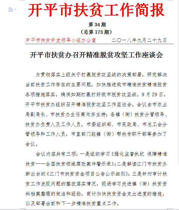 開平扶貧工作簡報2018年第34期(總第173期)