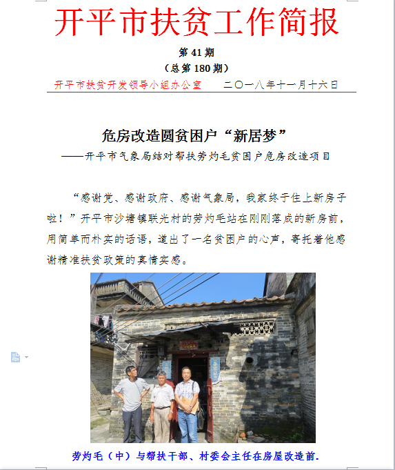 開平市扶貧工作簡報2018年第41期(總第180期)