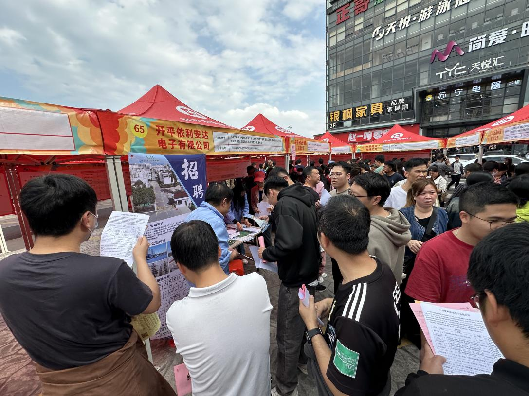 活動當天陽光高漲,熱鬧非凡,供需兩旺。本次招聘會吸引了開平市赤坎舊埠旅游發(fā)展有限公司、廣東嘉士利食品集團有限公司、開平市依利安達有限公司、開平潭江半島酒店有限公司、廣東華藝衛(wèi)浴實業(yè)有限公司、廣東利多邦衛(wèi)浴有限公司等多家開平市知名企業(yè)進場招聘,涵蓋食品、水暖衛(wèi)浴、建筑業(yè)、服務業(yè)等多個行業(yè),其中工程師、管理人員、技術工、操作工等職位較多,還有會計、電商主播、客服、銷售專員等崗位,崗位類型豐富滿足求職者多元化的就業(yè)需求。