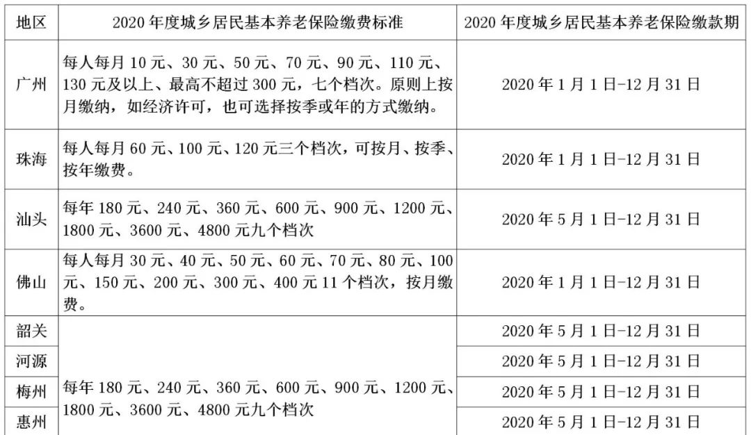 答:一般情況下,參保人當年繳納當年的城鄉居民基本養老保險費,2020年城鄉居民基本養老保險費的繳費標準和繳款期限如下: (點擊圖片可放大)↓