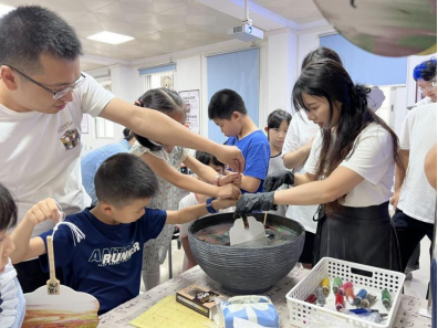 本次活動集知識性、趣味性、體驗性為一體,共分為非遺漆扇制作體驗與杯子蛋糕制作兩部分。活動現場,每組家庭聽取了漆扇老師關于漆扇的歷史發展和制作工藝介紹,均被漆扇獨特的藝術魅力和深厚的文化底蘊深深吸引。通過親手制作屬于自己獨一無二的漆扇,深深體驗了中國非遺技藝的魅力。隨后,每組家庭在烘焙老師的指導下,親手制作杯子蛋糕,領略烘焙的無窮樂趣。每個孩子變身小小魔法師,用奶油、水果、餅干等對蛋糕胚進行“化妝”,現場一片歡聲笑語。