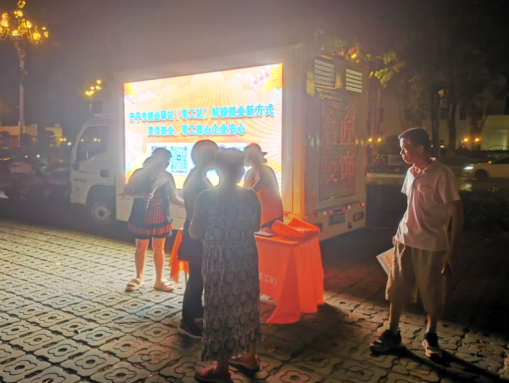 流動(dòng)服務(wù)車(chē)配置LED顯示屏+廣播,全方位宣傳“就業(yè)驛站”招聘崗位信息。日間把線(xiàn)下就業(yè)服務(wù)深入我市基層各鄉(xiāng)鎮(zhèn)的市場(chǎng)門(mén)口、小公園旁邊等家庭富余勞動(dòng)力常見(jiàn)地方,并結(jié)合實(shí)際篩選出家政、縫制工、小手工等廣受家庭富余勞動(dòng)力歡迎的崗位,促使供需精準(zhǔn)對(duì)接;夜間則到廣場(chǎng)、榕樹(shù)下等群眾休閑娛樂(lè)聚集的地方,讓群眾在休閑活動(dòng)的同時(shí),可以輕松了解招聘信息,滿(mǎn)足群眾就近求職、了解政策的需求,為就業(yè)服務(wù)“聚人氣”,讓政策宣傳“接地氣”。自流動(dòng)服務(wù)車(chē)投入使用以來(lái),流動(dòng)服務(wù)車(chē)共開(kāi)展17場(chǎng)活動(dòng)、共有80家企業(yè)參與并提供近400個(gè)零工就業(yè)崗位,活動(dòng)惠及人數(shù)達(dá)到1078人次,促進(jìn)32人次實(shí)現(xiàn)就業(yè)。切實(shí)打通就業(yè)服務(wù)“最后一公里”,讓“招聘小活動(dòng)”實(shí)現(xiàn)“效能大成果”。