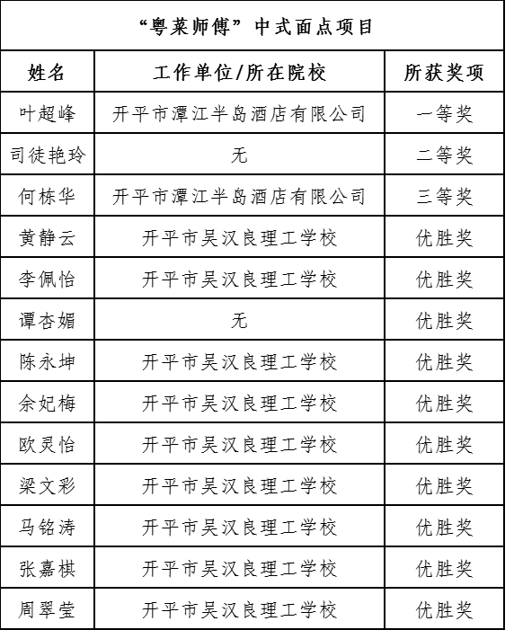 根據《關于舉辦2024年開平市“僑”奪天工職業技能競賽的通知》(開人社〔2024〕129號),現將2024年開平市“僑”奪天工職業技能競賽獲獎名單公告如下: