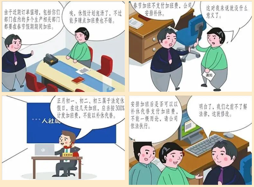 詳細了解了規定,小王有了底氣,他和其他同事一起向公司提出了意見。公司也希望過年期間能夠順利地留住員工完成訂單,于是根據法律規定修改了加班補償方面的安排,給員工們吃下了定心丸。