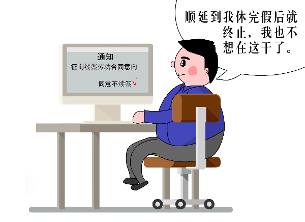 休假期間,人事經理給他發了一份意向征集表,詢問他是否續簽勞動合同。由于小郭原本也有跳槽的想法,于是他打算將勞動合同順延至病假結束后就終止,所以選擇了“不續簽”,并表示希望將合同順延至病假結束。沒想到,小郭病假還沒休完,就收到了公司終止勞動合同的通知。